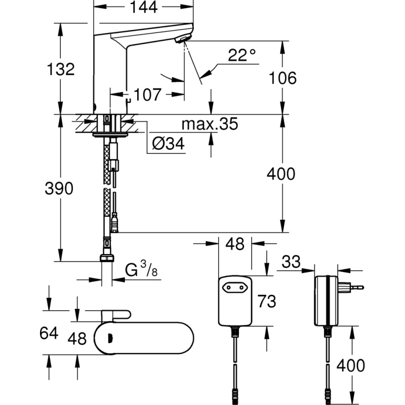Grohe Izlietnes maisītājs Eurosmart Cosmo E, infra-red, 230V, hroms