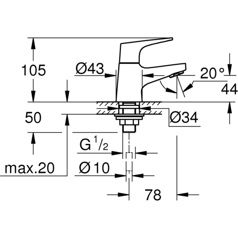 Grohe Izlietnes krāns vienam ūdenim BauFlow XS, hroms